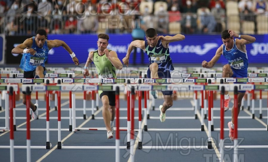 ATLETISMO: Campeonato de España Absoluto en Pista Cubierta. Pista Cubierta de Atletismo de Expourense (Orense) los dias 25, 26 y 27-02-2022. 60 metros vallas hombres; Orlando ORTEGA 3º, Asier MARTINEZ 1º, Enrique LLOPIS 2º.