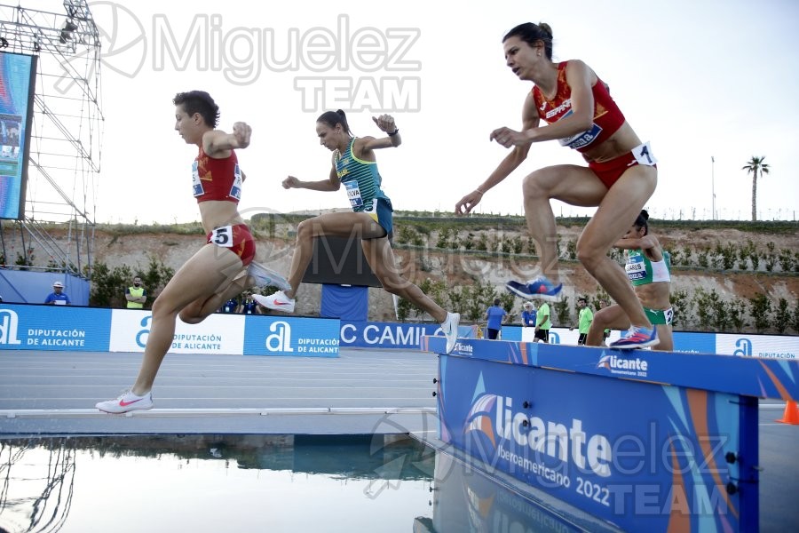 ATLETISMO: 19 Campeonato Iberoamericano. Estadio Olimpico Emilio Cano en La Nucia (Alicante), dias 20, 21 y 22-05-2022. 3000 metros obstaculos mujeres; Carolina ROBLES, Tatiane Raquel DA SILVA (BRA) 3º, Irene SANCHEZ-ESCRIBANO 2º.