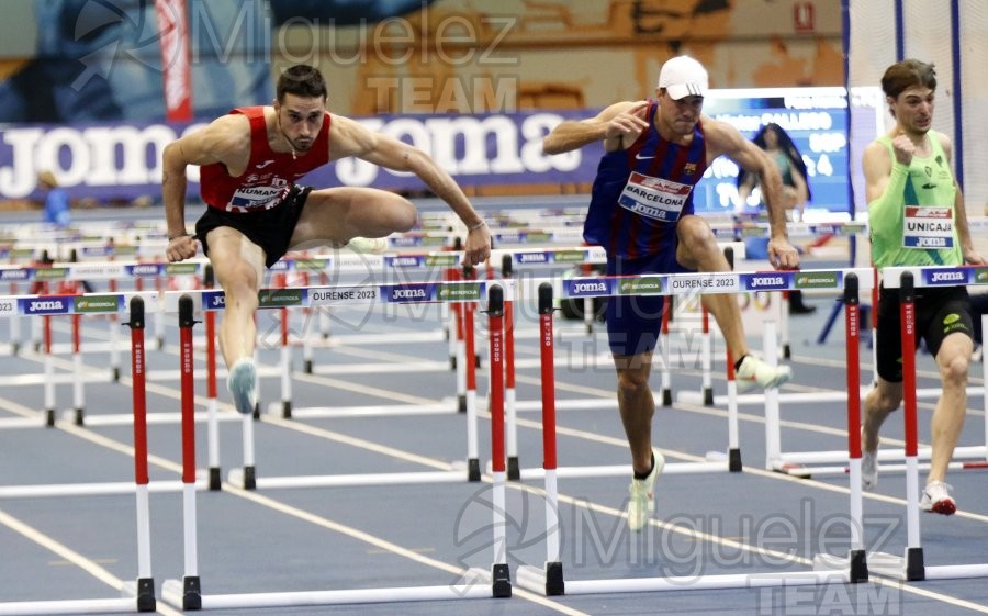 ATLETISMO: Campeonato de España de Clubes Copa Joma hombres en Pista Cubierta, Pabellón cubierto de Expourense (Orense) 11-02-2023. 60 metros vallas hombres; Daniel Cisneros 1º, Pedro Garcia 2º.