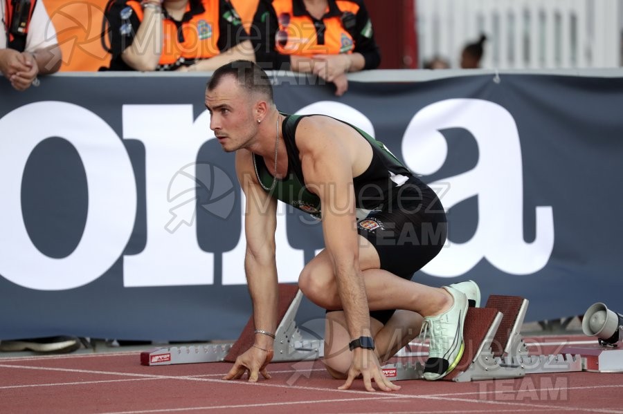 Meeting Internacional de Atletismo Jaen Paraiso Interior. XXV Memorial Francisco Ramon Higueras. World Athletics Continental Tour Bronce. Polideportivo Municipal (Andujar) 26-05-2023. 100 metros hombres; Bernat CANET 1º.